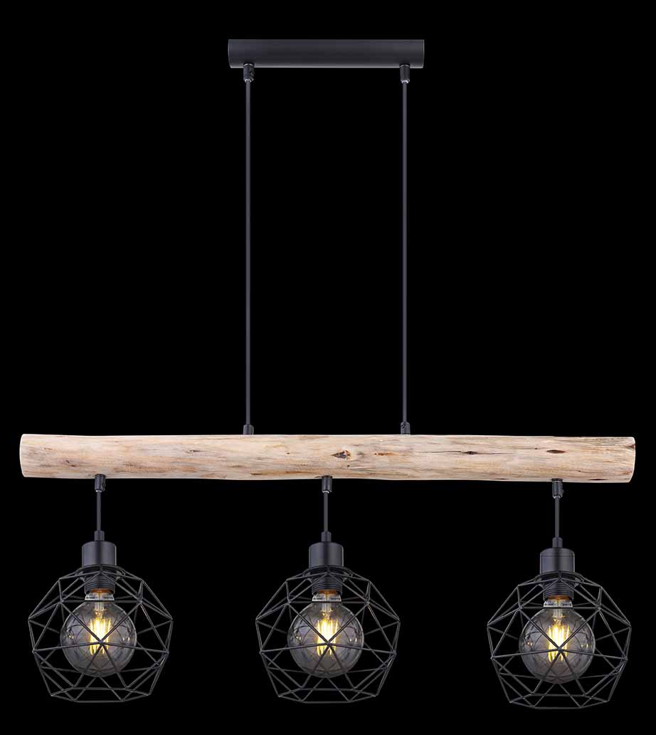Cette impressionnante suspension en bois avec des abat-jours en métal tendance est un élément moderne accrocheur pour tout salon. Utilisez Theodor au-dessus de votre table de cuisine ou comme éclairage d’ambiance dans votre coin repas. Compatible avec des ampoules E27 d’une puissance maximale de 60 watts dans le luminaire à trois lampes. La lampe combine les matériaux de manière unique et crée de magnifiques effets de lumière dans un style classique de maison de campagne, parfait pour toute situation de vie.