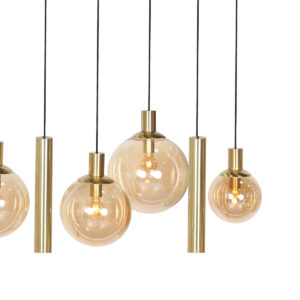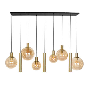 Suspension élégante à 9 lumières de la série Bollique de Steinhauer, dotée de 6 globes en verre ambre de différentes tailles et de 3 tubes qui projettent de la lumière directe. Les globes ont une finition légèrement réfléchissante pour un effet encore plus luxueux. Avec une largeur de 150 cm et une profondeur de 55 cm, cette lampe est idéale au-dessus d’une table à manger ou dans un espace de vie ouvert. Les tubes sont équipés de sources lumineuses dimmables de 4,9 W, réglables de 2200 à 2700 Kelvin. Garantie de 2 ans incluse.