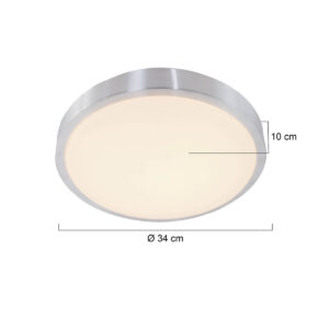 Le plafonnier Galaxy de Mexlite est un éclairage polyvalent et fonctionnel pour les salles de bains et les espaces de vie. Avec un diamètre de 34 cm et une hauteur de 10 cm, ce plafonnier est idéal pour ceux qui recherchent une source de lumière moderne et subtile. Le puissant module LED de 18 Watts produit une lumière blanche chaude (2700 Kelvin) avec une sortie de 1440 Lumens. La classification IP44 rend cette lampe sécurisée pour une utilisation dans les zones 2 et 3 de la salle de bains. Un choix élégant et écoénergétique sans chichi.
