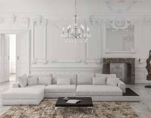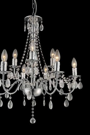 William est un magnifique plafonnier en forme de chandelier, embellie de superbes cristaux acryliques suspendus aux neuf bras chromés élégants. Avec un grand diamètre de 63 cm, le plafonnier remplit un espace d’élégance et d’allure. Le plafonnier contient neuf douilles E14 qui se marient parfaitement avec des ampoules (max. 40W). Nous recommandons cependant l’utilisation d’ampoules LED en raison de leur contribution aux économies d’énergie et de leur longue durée de vie.