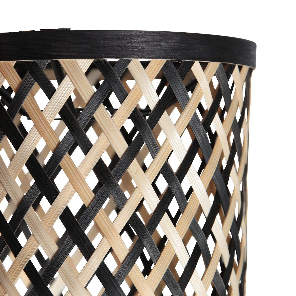 Cette abat-jour en bambou compacte de 12 par 11 centimètres est petite par sa taille mais grande en ambiance. La fine structure tissée ouverte crée un motif lumineux chaleureux, tandis que la couleur naturelle du bambou s’accorde magnifiquement avec des intérieurs clairs et naturels.