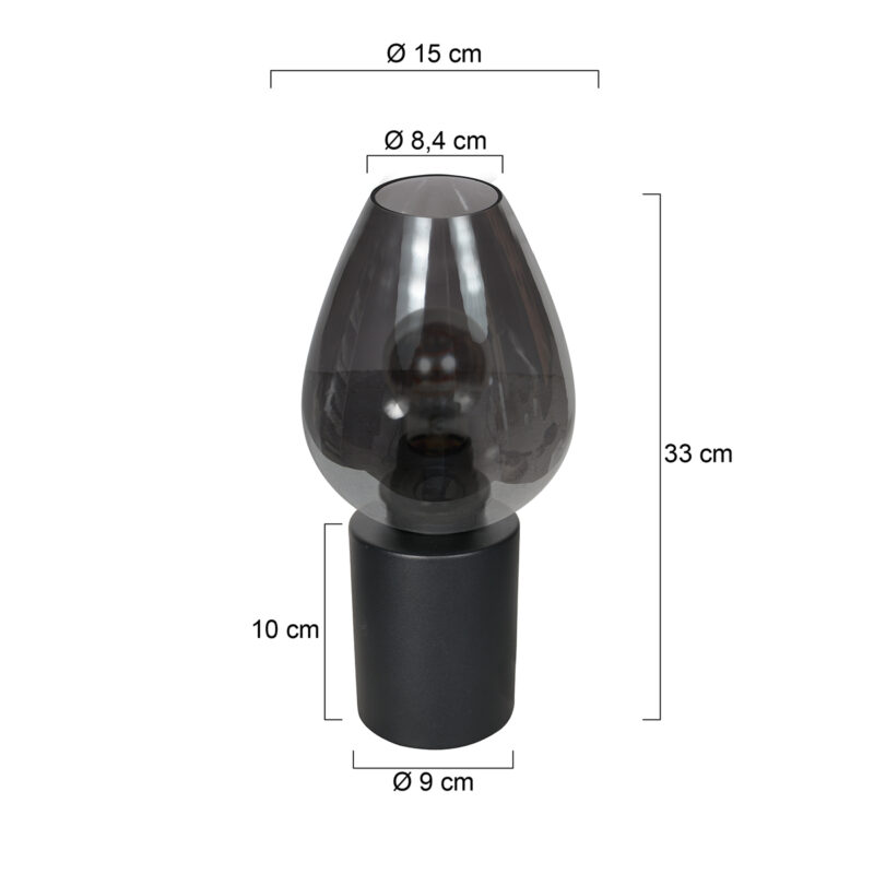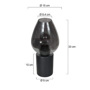 Petite lampe de table noire en verre fumé Steinhauer Bloeba