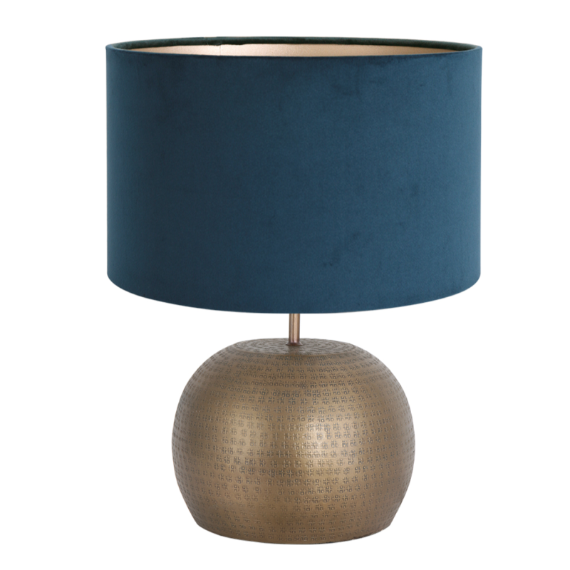Aucune pièce à imaginer où vous ne pourriez pas profiter de cette lampe avec un pied arrondi et un abat-jour en velours bleu. Ne serait-elle pas magnifique sur ce petit meuble dans le hall ? Ne contribuerait-elle pas à ajouter une ambiance chaleureuse dans votre salon ? Ne serait-elle pas vraiment ravissante dans votre chambre ? Bien sûr que si.