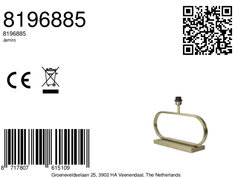 Pied de lampe classique ovale doré Light & Living Jamiro