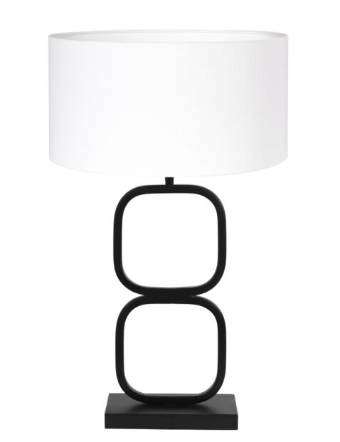 Pied de lampe noir double cercle Light & Living Lutika abat-jour blanc