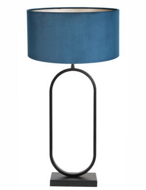 Pied de lampe noir ovale abat-jour velours bleu Light & Living Jamiri noir
