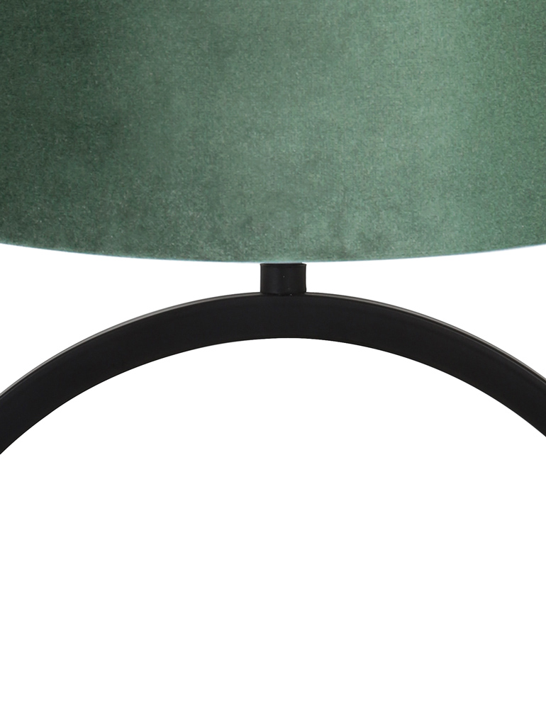 Pied de lampe rond noir abat-jour en velours vert Light & Living Liva noir