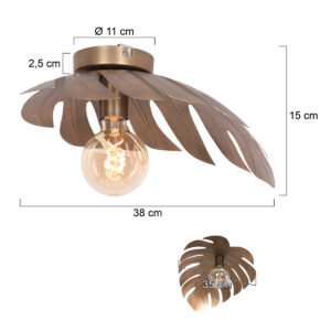 La lampe de plafond Feuilleter de Steinhauer en bronze possède une apparence unique grâce à la conception de l’abat-jour, qui rappelle une feuille de palmier. Le cadre métallique élégant et la couleur bronze créent une atmosphère chaleureuse dans votre espace. Grâce au culot E27, vous pouvez choisir vous-même la source lumineuse que vous souhaitez utiliser, vous permettant ainsi de régler l’éclairage selon vos envies. Avec un diamètre de 38 cm, la lampe constitue un joli point focal dans la pièce, et vous pouvez l’utiliser à la fois comme lampe de plafond et comme applique murale.