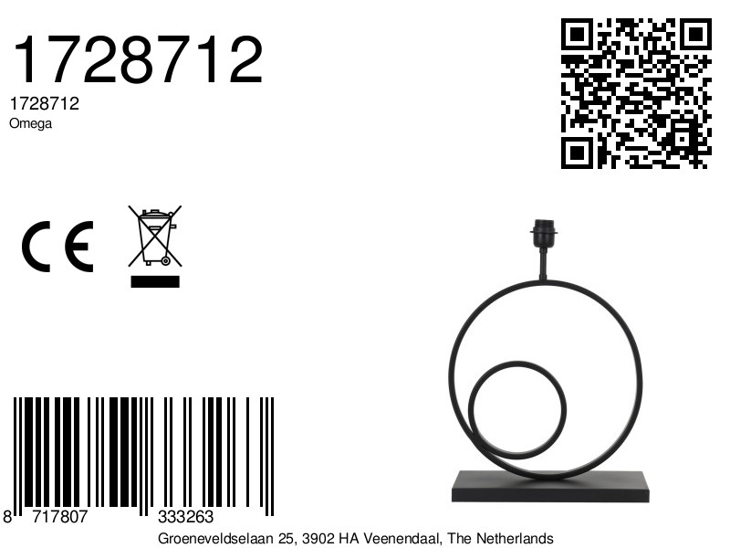 Piedestal de lampe en métal noir rond Light & Living Omega