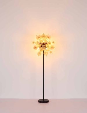 Le plafonnier UDO est un véritable accroche-regard avec un design en métal noir mat et doré, relié par des boules de différentes tailles. L’abat-jour est composé de boules en verre avec une apparence ambre, qui diffusent une lumière chaude et confortable. Avec un diamètre de 550 mm, ce plafonnier est assez grand pour éclairer efficacement un espace et est parfait pour les salons, les chambres ou les salles à manger.