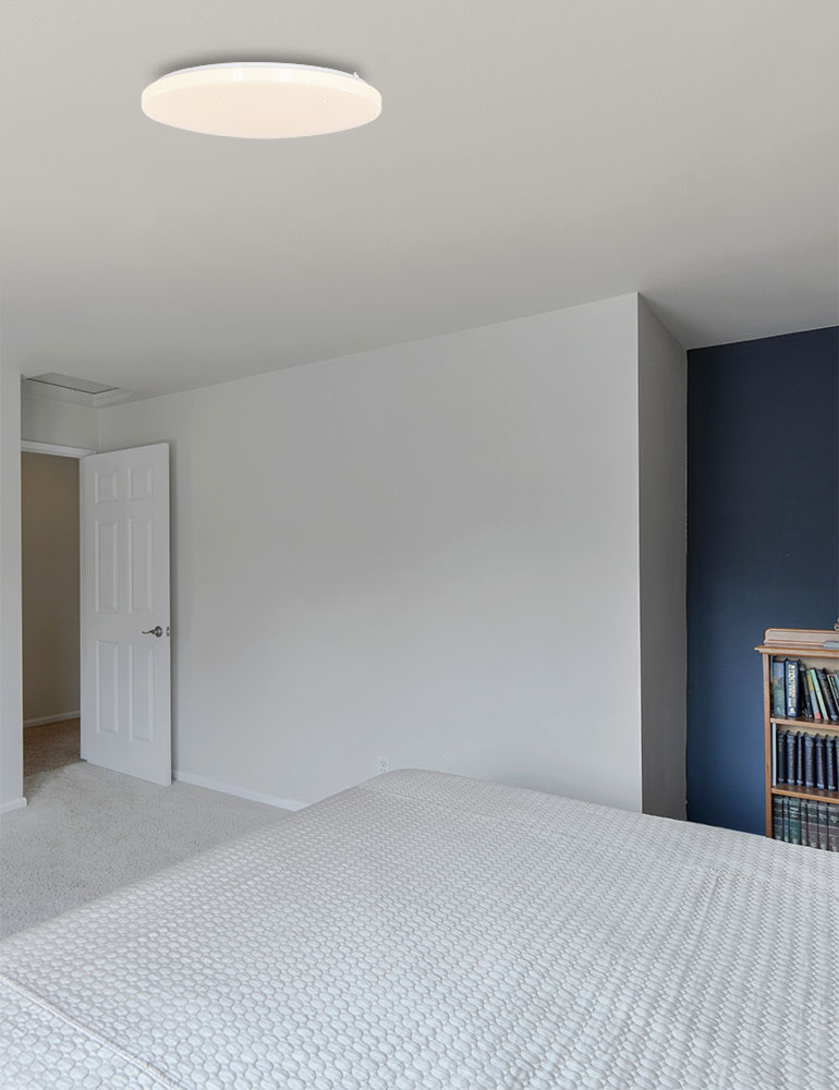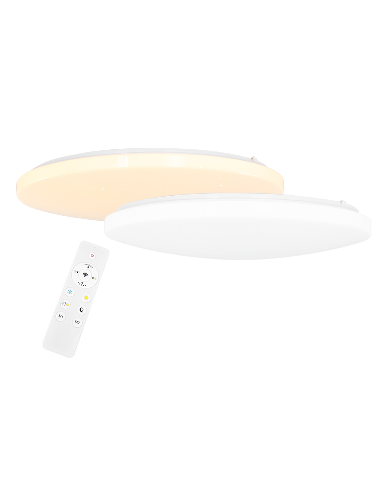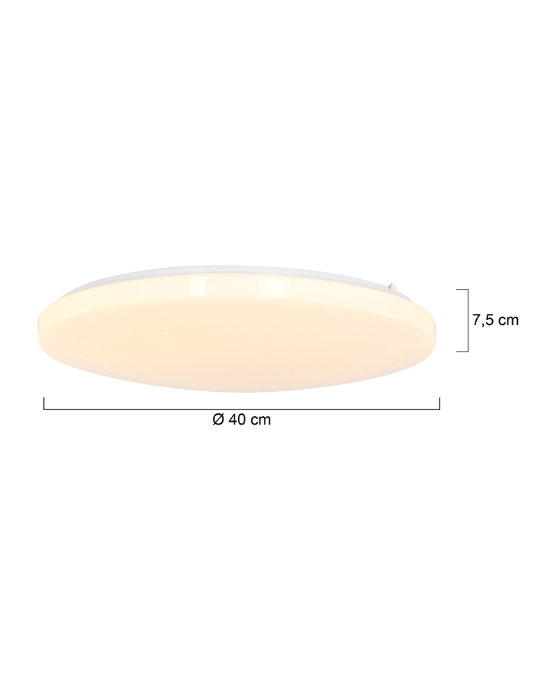 Le plafonnier Starlight de Mexlite impressionne par sa simplicité. La lampe en plastique et en métal blanc s’adapte parfaitement à votre plafond. Avec la télécommande, vous pouvez facilement régler la couleur de la lumière, qui varie de la lumière blanche à la lumière chaude. De plus, la lumière est également dimmable. Le plafonnier est adapté pour le salon, mais peut également être suspendu dans la chambre à coucher ou dans le hall.