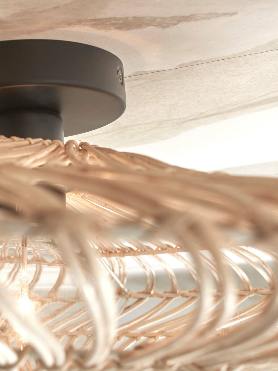 Le plafonnier en rotin blanc de la série Zanzibar ajoute une touche de style bohème frais à votre intérieur. Le rotin blanc et le métal se combinent pour une apparence légère dans les salles à manger ou les salons. IP20 et douille E27 pour une élégance pratique.