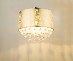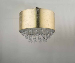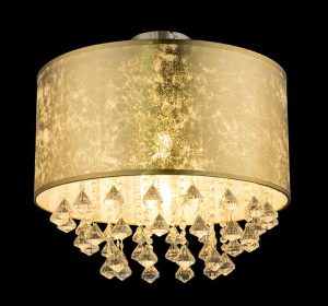 Ce plafonnier de la série Amy, d’un diamètre de 40 cm, offre un abat-jour en textile doré avec une finition métallique et divers éléments transparents qui dispersent la lumière et créent de petits arcs-en-ciel. Le raccord E27 offre une flexibilité pour des sources lumineuses allant jusqu’à 40W. Associez-le à d’autres modèles pour un intérieur complet. Notez : les lampes ne sont pas incluses.