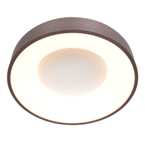 Le plafonnier couleur bronze de la série Ringlede a un diamètre généreux de 48 cm et est équipé d’un module LED de 40 watts. Ce module fournit une puissance lumineuse allant jusqu’à 3600 lumens et une température de couleur chaude de 2700 Kelvin. Le luminaire est dimmable avec un variateur externe (non inclus), ce qui vous permet de créer facilement l’ambiance souhaitée dans les plus grands espaces.