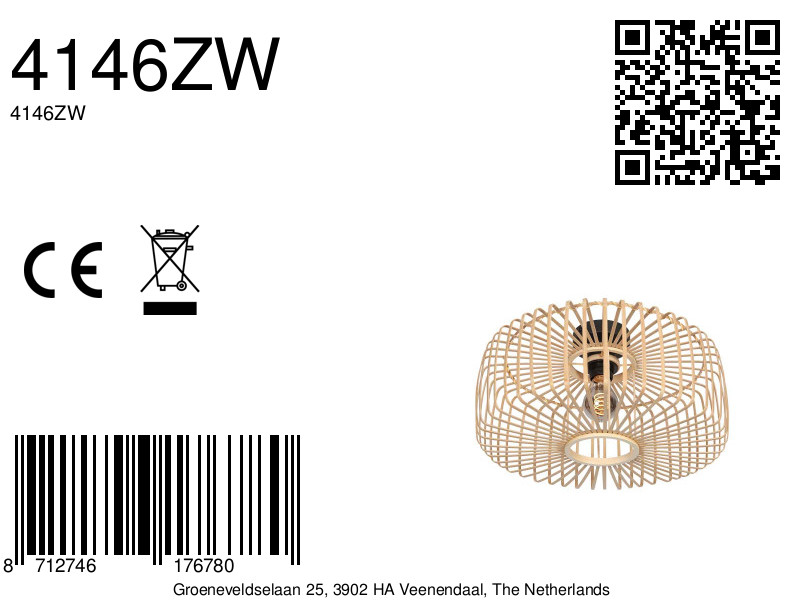 La lampe est équipée d’une douille E27, ce qui vous permet de choisir une source de lumière assortie. La base en métal noir forme un contraste élégant avec le bambou et apporte une touche moderne au design naturel. Un équilibre parfait entre fonctionnalité et raffinement décoratif pour un intérieur chaleureux.