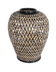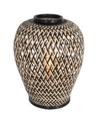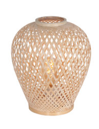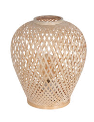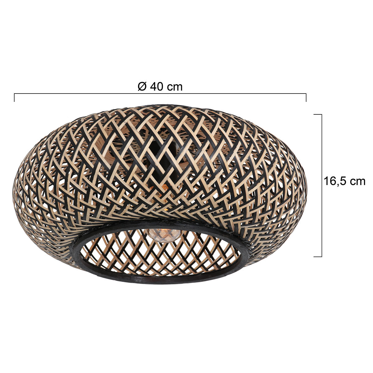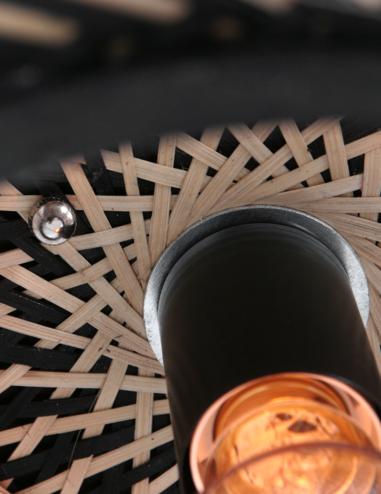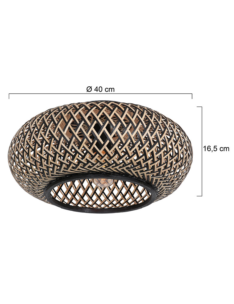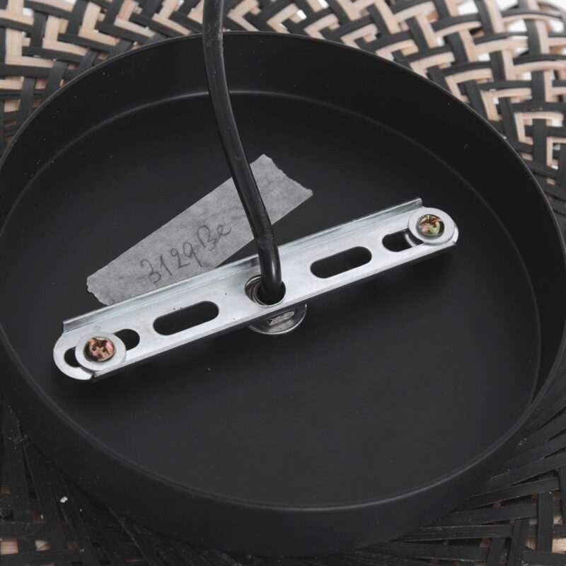 La lampe de plafond en bambou tressé ajoute une atmosphère supplémentaire lorsqu’elle est allumée. La lumière passe à travers les trous du tressage. La couleur de la lampe elle-même, une combinaison de bambou brun et de noir, crée un effet supplémentaire. Cette lampe s’intègre dans un intérieur classique, mais convient également à une décoration moderne.