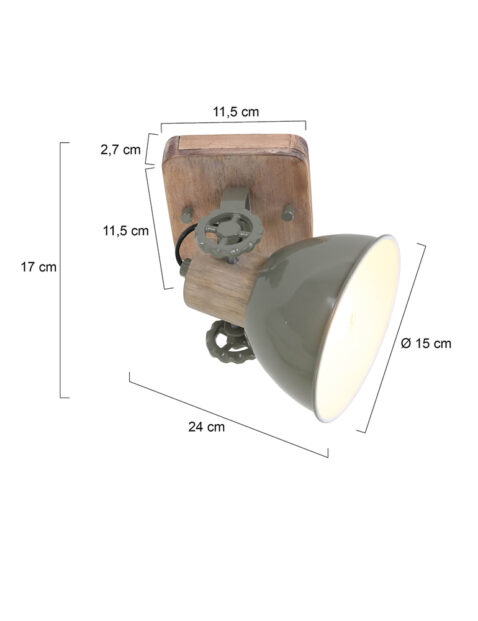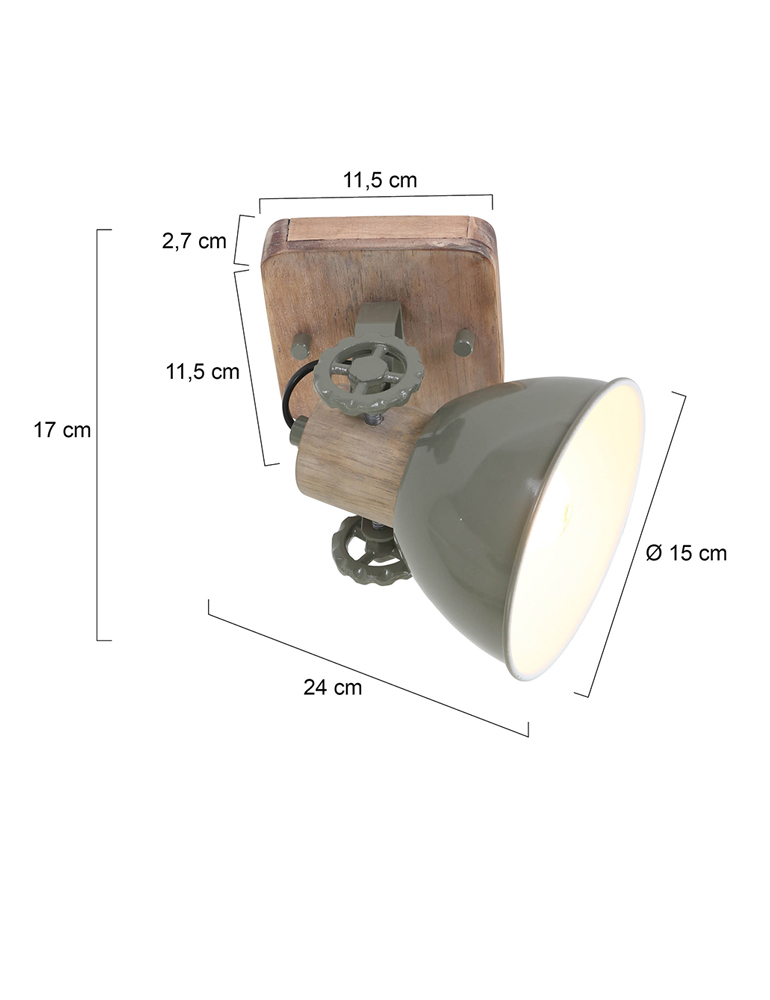 Le spot de plafond ou mural tendance Gearwood de Mexlite est un élément accrocheur pour tout intérieur. Le cadre en métal brillant vert est associé à des accents en bois, créant ainsi un effet ludique. Le spot est inclinable, rotatif et réglable. Équipé d’une douille E27, adapté pour des sources lumineuses jusqu’à 40 Watts.