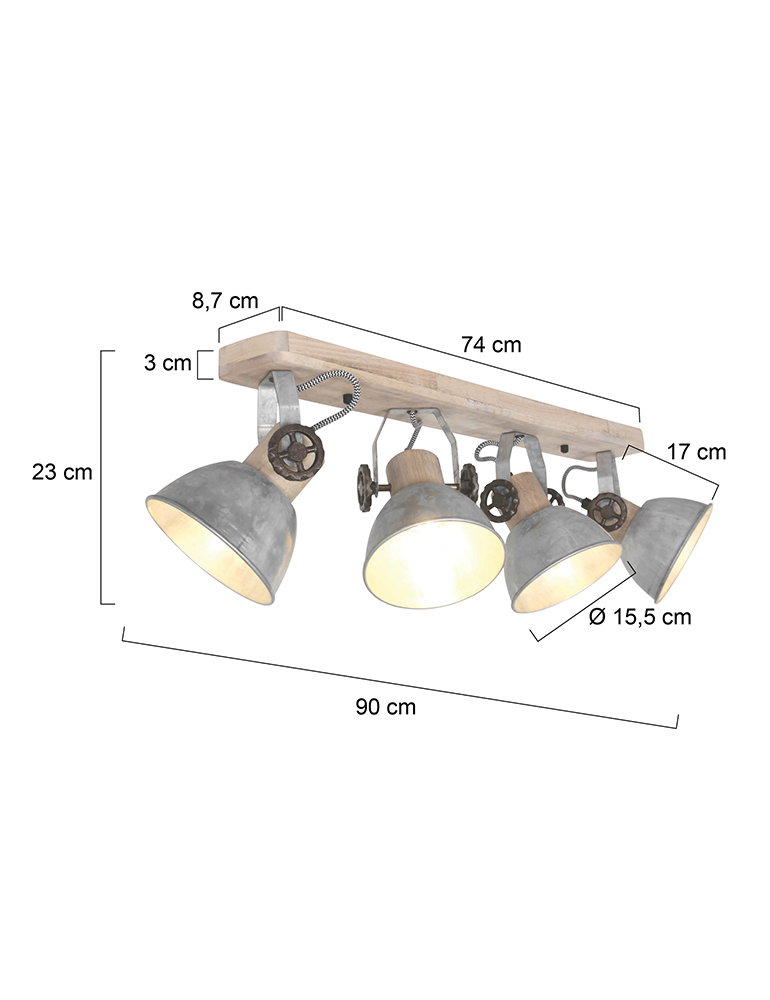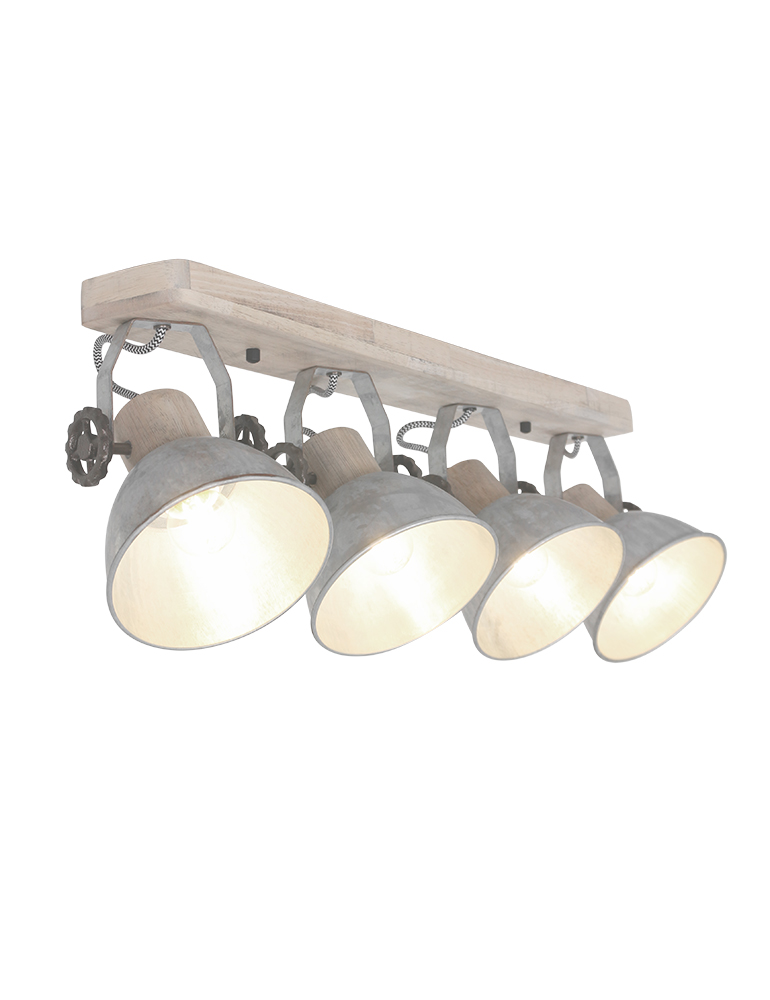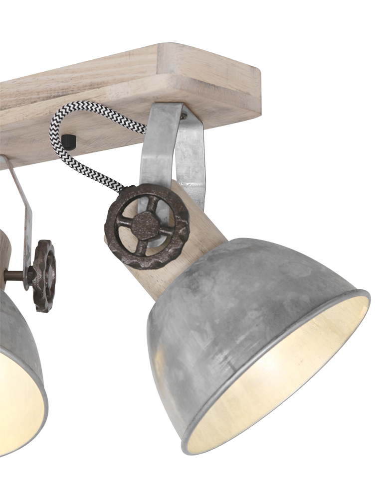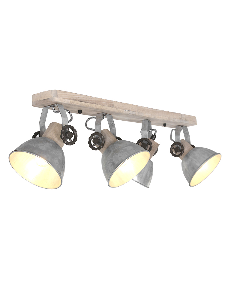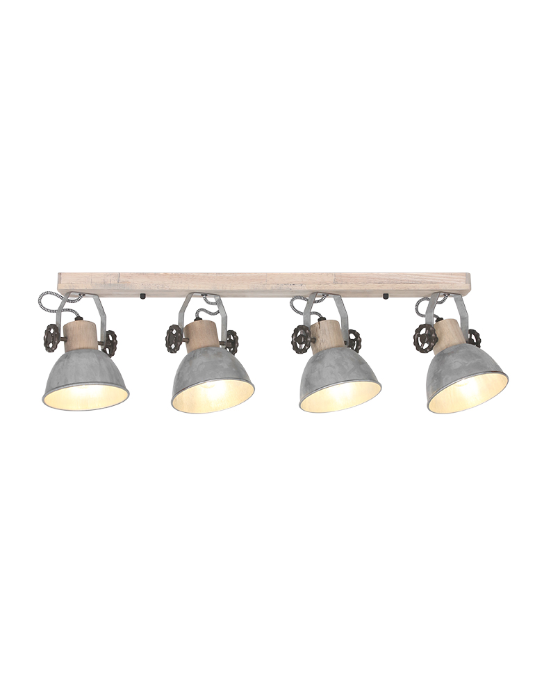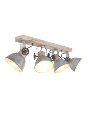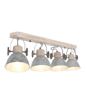 Plafonnier industriel à quatre grands spots Gerwood Mexlite bois et gris