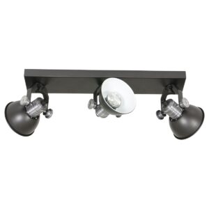 Le spot plafond ou mur noir à 3 lumières de la série Brooklyn a un design robuste et est équipé de spots réglables. La lampe est livrée avec des sources lumineuses LED GU10 économes en énergie de 4,9 watts par spot. Grâce à la fonction dim-to-warm, vous pouvez ajuster la couleur de la lumière de 2200 à 2700 Kelvin, avec un rendement lumineux de 480 lumens par source lumineuse. Le luminaire est fabriqué en métal et est équipé d’un câble en tissu. Les abat-jours ont un diamètre de 11 cm et la hauteur totale de la lampe est de 12 cm.
