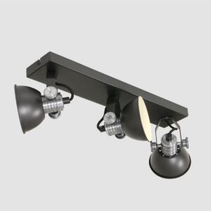 Avez-vous déjà trouvé votre lampe de plafond idéale ? Découvrez cette lampe de plafond noire à 3 lumières au style industriel de Steinhauer, peut-être sera-t-elle celle-ci. La lampe est fabriquée en acier noir brossé, ce qui lui donne un aspect mat et résolument industriel. Cet aspect est renforcé par le filetage sur les spots et les roulettes de chaque côté de chaque spot. Cela vous permet d’orienter les spots indépendamment les uns des autres, afin de créer plusieurs effets de lumière. Le platine de plafond se monte facilement sur le point lumineux de votre plafond.