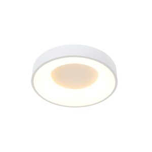 Le plafonnier Ringlede blanc combine modernisme minimaliste et éclairage de haute qualité. Équipé d’un module LED de 30 Watts remplaçable avec une luminosité de 2800 lumens et une couleur de lumière chaude de 2700 Kelvin. Grâce au driver dimmable intégré, l’intensité lumineuse peut être facilement ajustée via un variateur mural (non inclus). Avec un diamètre de 30 cm et une hauteur de 9 cm, cette lampe est parfaite pour divers espaces.