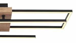Apportez une nouvelle dimension à votre intérieur avec ce plafonnier saisissant qui offre une combinaison parfaite de fonctionnalité et de style. Deux barres allongées en noir mat reposent sur une base en noir mat élégante, embellie de magnifiques détails en bois. Un cadre rectangulaire intégré (80x20cm) avec des panneaux LED est encadré par ce design, qui diffuse une lumière blanche chaude de 3000 Kelvin. Cette lumière crée une ambiance agréable, résultant en un aménagement à la fois élégant et accueillant.
