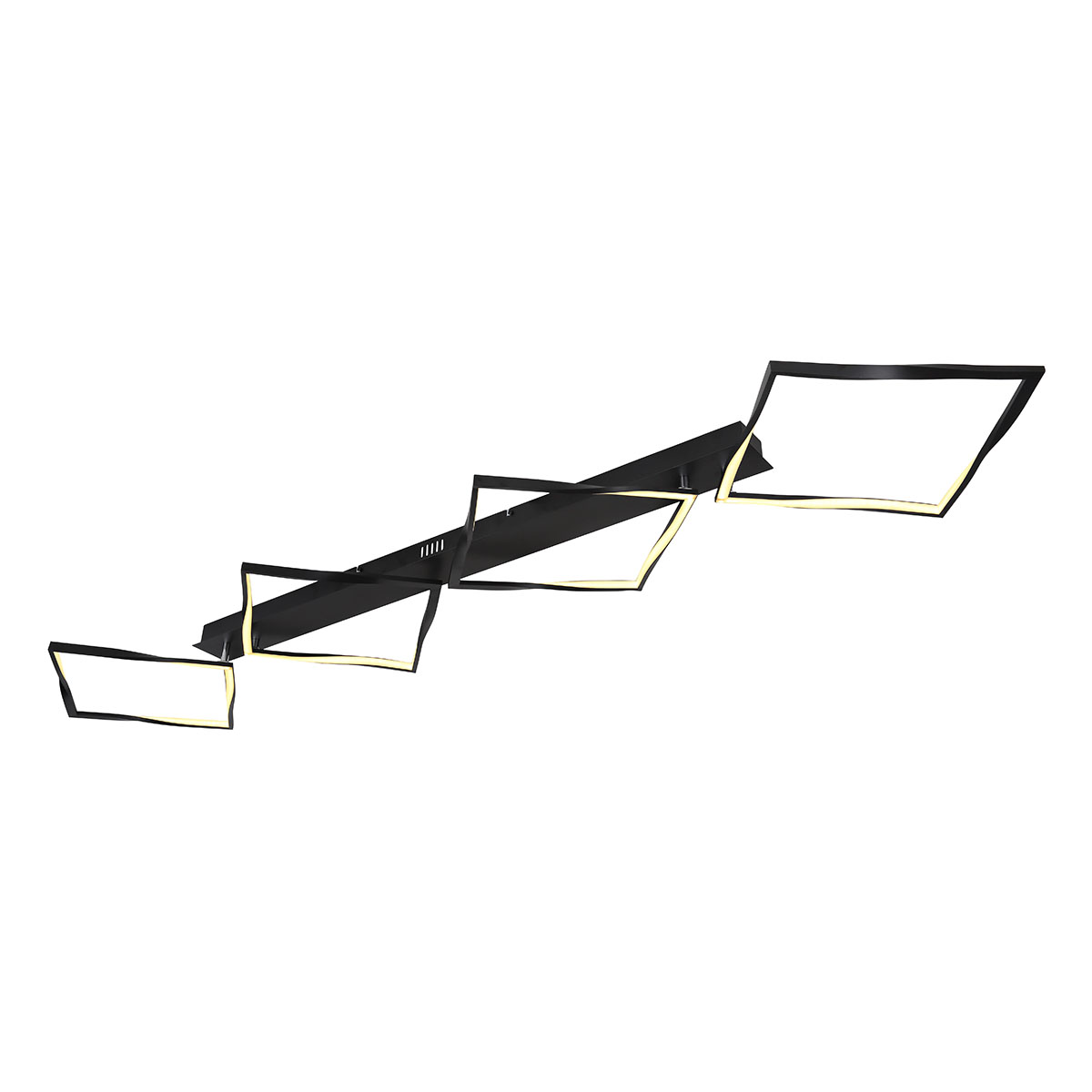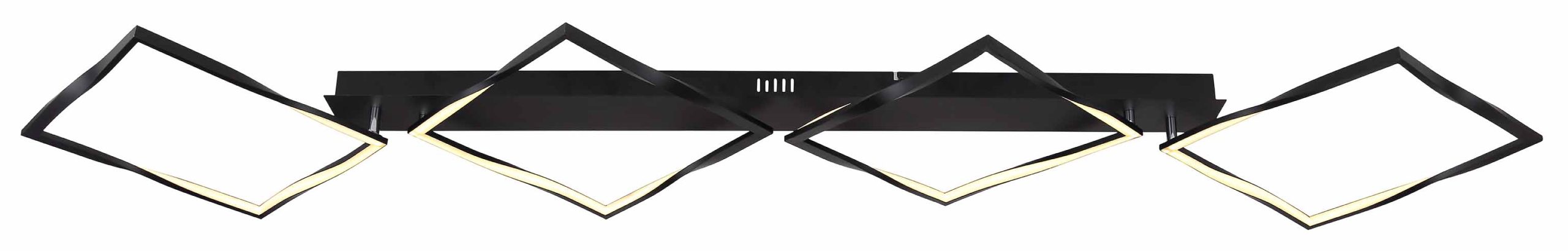 Découvrez le charme de notre plafonnier au design épuré, entièrement fini en aluminium noir mat. Cette pièce unique est équipée de quatre panneaux LED offrant une lumière chaleureuse de 3000 Kelvin, artistiquement présentée dans des cadres torsadés qui créent un look visuellement dynamique. Fixée à une base rectangulaire, cette lampe impressionnante mesure presque 177 cm de long et 40 cm de large. Laissez-vous envoûter par la beauté moderne de ce plafonnier qui allie une finition noire mate à un éclairage d’ambiance.