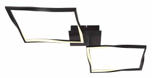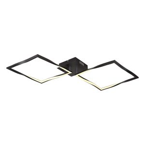 Ajoutez une touche de style contemporain à votre espace avec ce plafonnier magnifiquement conçu. La lampe est composée d’une plaque de base noire mate, sur laquelle deux panneaux LED carrés sont fixés avec une structure de cadre unique et torsadée. Ceux-ci émettent une agréable lueur blanc chaud de 3000 Kelvin, créant une ambiance chaleureuse. Avec une longueur impressionnante de près de 87 cm et une largeur de 40 cm, cette lampe est finie en aluminium noir mat pour un look épuré.