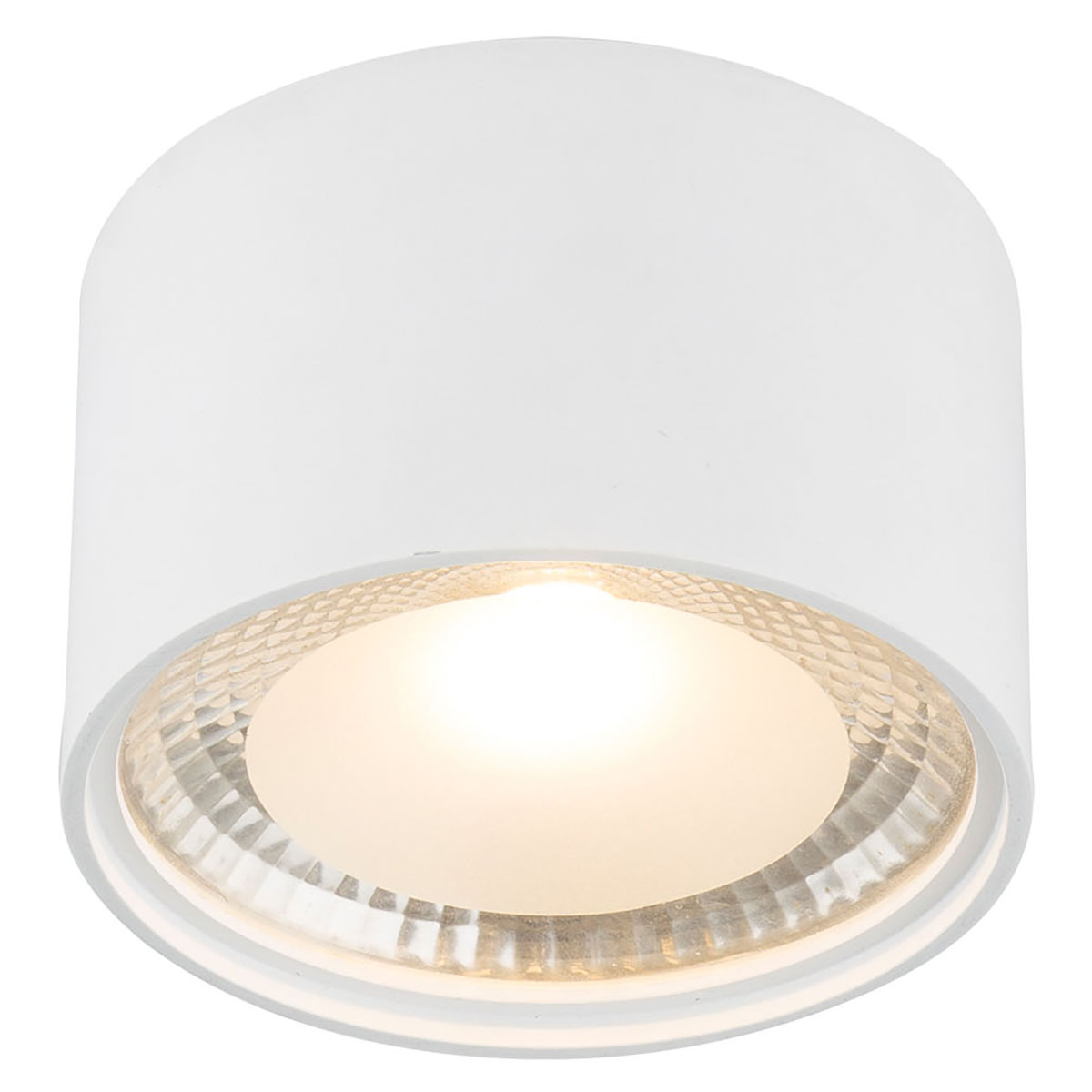 Stylé et fonctionnel, ce plafonnier blanc mat a un diamètre de 11,3 cm et s’intègre parfaitement dans un intérieur moderne. L’installation de plusieurs lampes ensemble crée un effet harmonieux. Le cylindre métallique blanc avec du verre partiellement satiné contient un LED intégré de 12W qui émet une lumière chaude blanche brillante de 980lm.