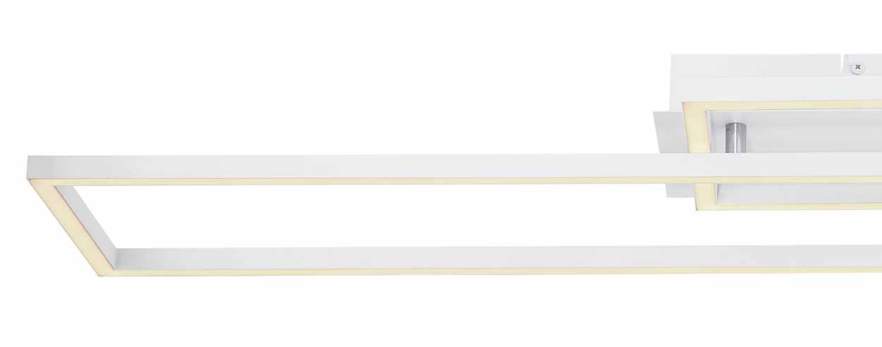 Ravivez votre espace de vie avec cette élégante série de plafonniers Tatjana, dotée d’un design unique de cadres rectangulaires doubles en métal blanc éclatant. Le plastique opale couvre les LED intégrées, garantissant un éclairage puissant de 2200 lumens. L’extra particulier est la possibilité d’ajuster la couleur de la lumière selon vos souhaits en trois étapes (2700, 4000 et 6000 Kelvin). Combinez-le avec d’autres designs de la même collection pour un intérieur harmonieux et chic.