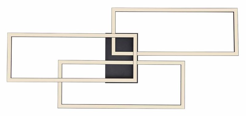 Embellissez votre espace de vie avec notre élégante lampe de plafond de la raffinée série Tiny. Cette lampe, d’une longueur de 90 cm, se compose de trois cadres en métal noir mat au design attrayant qui se croisent, avec un revêtement en plastique opale pour les lampes LED incluses, qui fournissent un éclairage puissant de 4300 lumens. Profitez de la télécommande fournie pour non seulement régler l’intensité de la lumière, mais aussi pour modifier la température de couleur variant du blanc chaud (2700 Kelvin) au blanc froid (6000 Kelvin), tout en vous relaxant avec la fonction veilleuse disponible. Choisissez parmi nos différents modèles de la même série pour créer une ambiance complète et stylée dans votre pièce.