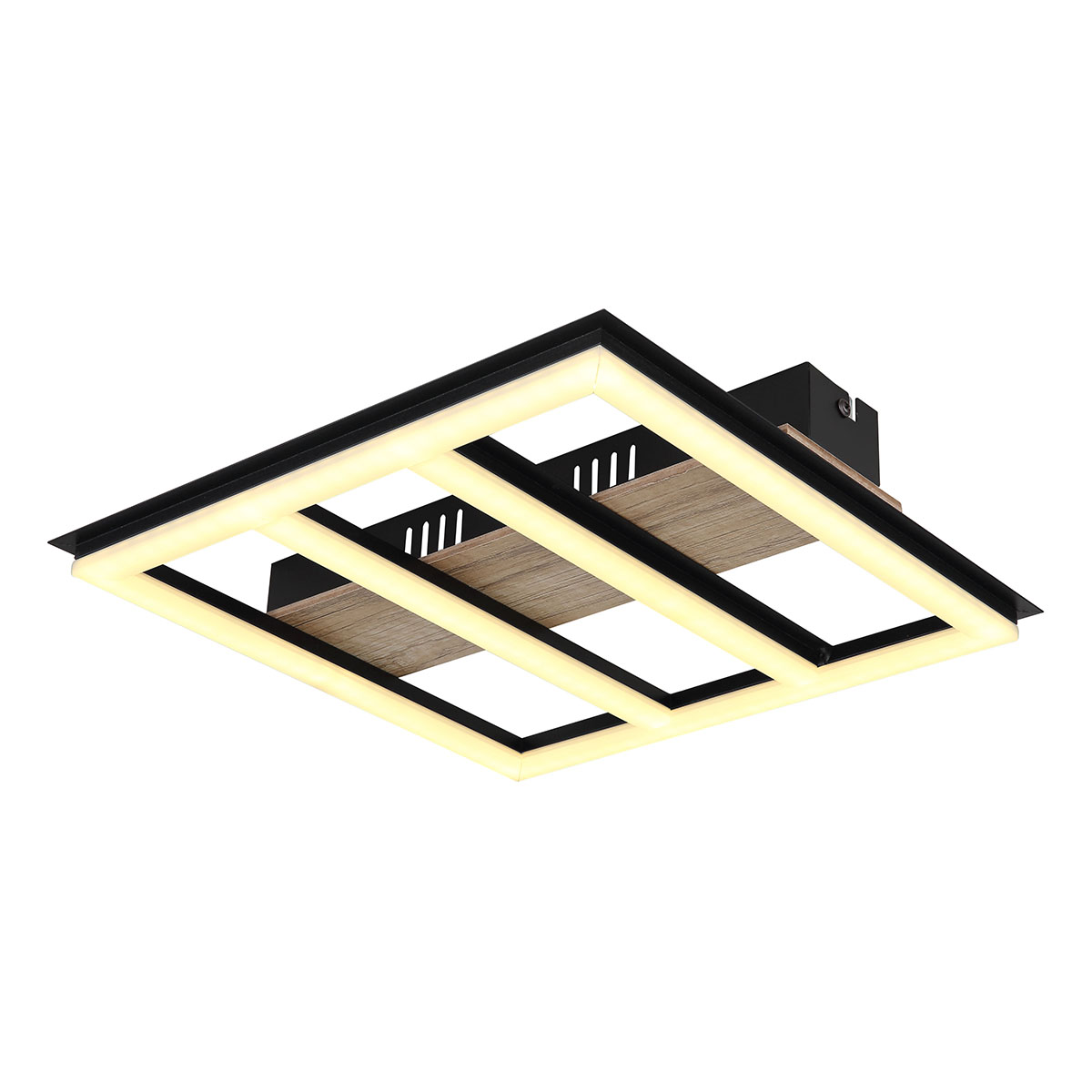 Décorez chaque pièce avec le plafonnier FROOMY en noir mat, fabriqué en métal et MDF avec une finition en bois sombre. Le diffuseur en plastique opale intégré garantit une lumière confortable et diffuse, tandis que les accents en aluminium noir mat donnent une allure contemporaine au luminaire. Malgré ses dimensions compactes de 300x300x55mm, l’ampoule LED de 18W fournie offre un éclairage puissant de 1700lm à une température de couleur de 3000K, et même jusqu’à 2200lm pour ceux qui ont besoin d’une plus grande luminosité. Optez pour le plafonnier FROOMY si vous recherchez une solution d’éclairage contemporaine, économe en énergie et lumineuse.