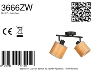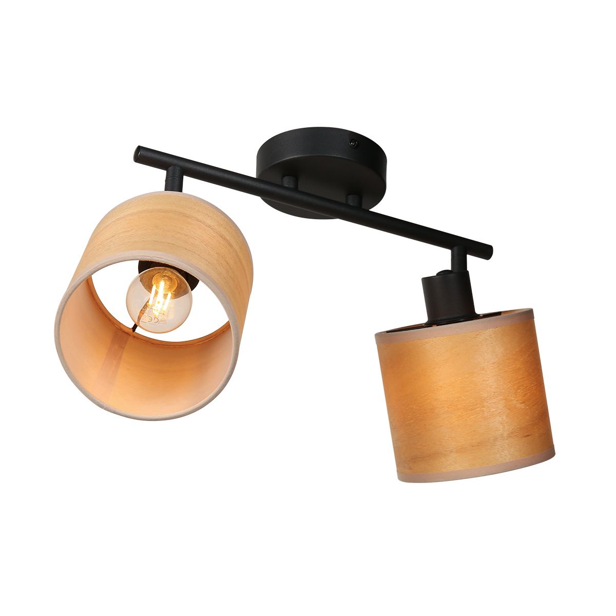Spot noir à deux lumières avec abat-jour en bambou Mexlite Bambus