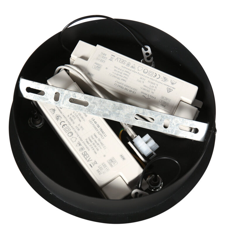 Le plafonnier Ringlux noir d’un diamètre de 80 cm combine un design épuré avec un éclairage fonctionnel. L’éclairage LED éclaire à la fois vers le haut et vers le bas et a une température de couleur de 2700K et un rendement lumineux de 5400 lumen. La lampe est dimmable avec un variateur externe (2 x 30W) et peut être réglée en hauteur entre 50 et 190 cm. Livrée avec une garantie de 2 ans.