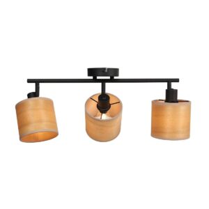 Spot noir à trois lumières avec abat-jour en bambou Mexlite Bambus