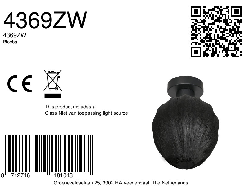 La Bloeba 4369ZW est une lampe de plafond élégante avec un abat-jour en forme de goutte en lin transparent noir, d’une largeur et d’une hauteur de 25 cm. Le matériau tissé ouvert laisse passer la lumière de manière chaleureuse, créant une ambiance cozy dans la pièce.