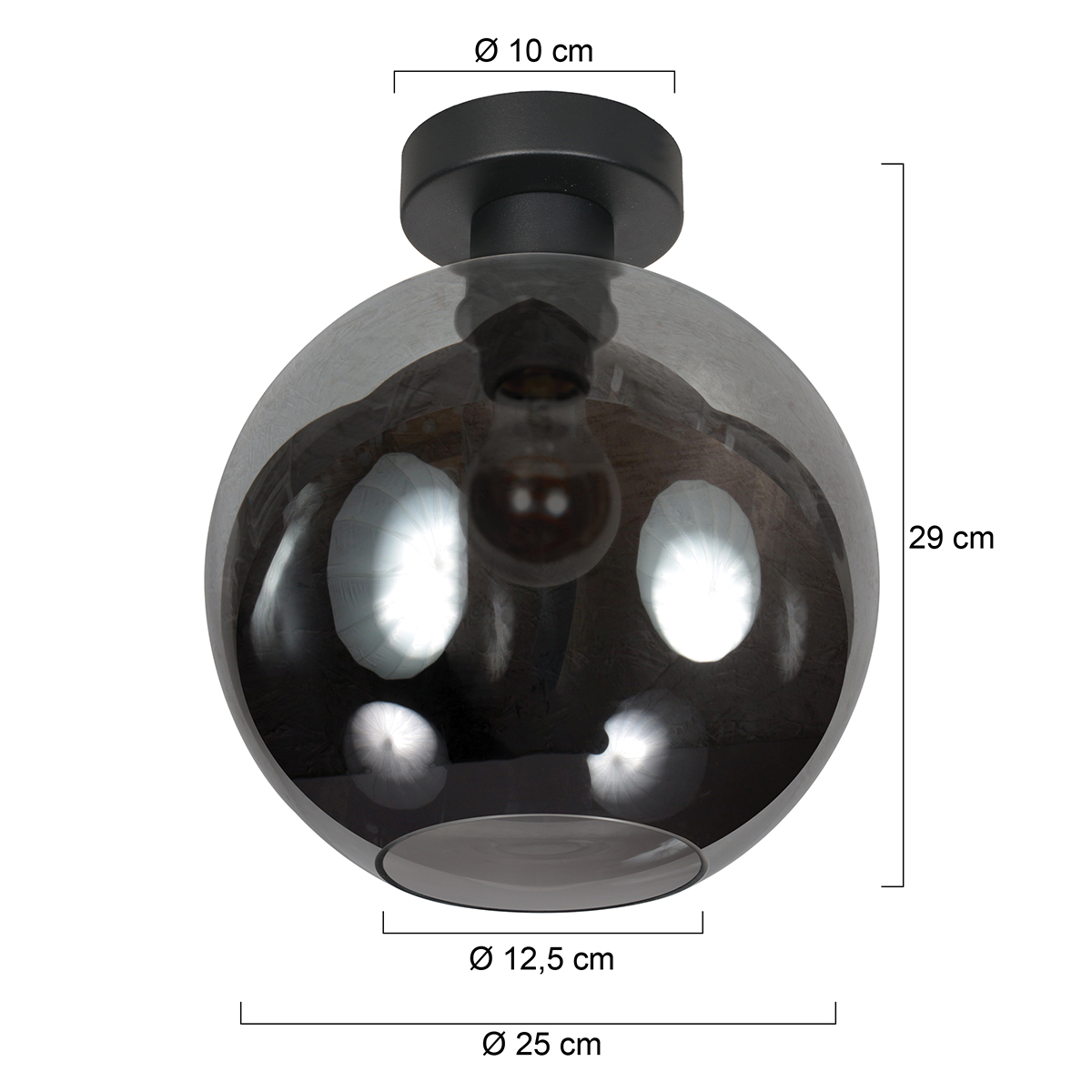 Plafonnier noir avec boule en verre fumé Steinhauer Bloeba