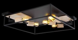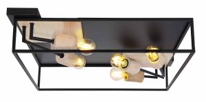 Ce plafonnier (Ø64 cm) se distingue par son design unique. La lumière peut rayonner de tous les côtés grâce au cadre en métal noir carré. Vous avez le choix libre des ampoules grâce aux cinq douilles E27, adaptées pour un maximum de 5×60 watts. Pour une durabilité supplémentaire, nous recommandons des ampoules LED. Cette lampe surprendra chaque propriétaire par son charme particulier.