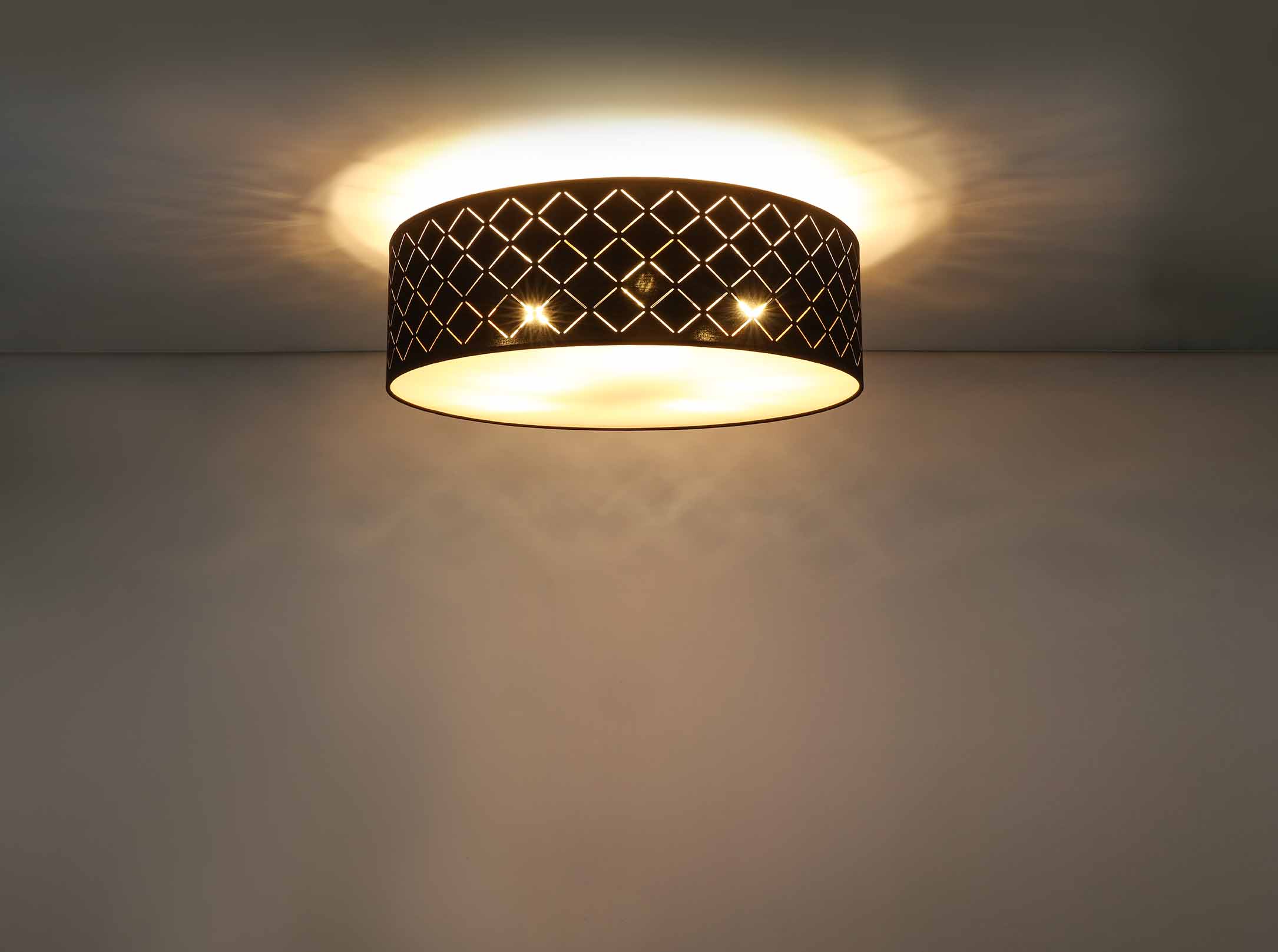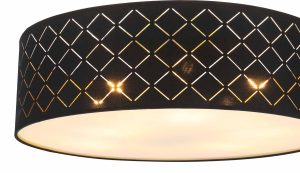 Enrichissez votre intérieur avec la lampe de plafond esthétiquement attrayante CLARKE, qui combine élégance et éclairage fonctionnel. Avec un abat-jour textile rond de 18 cm de hauteur (Ø60 cm), ornée de détails perforés stylés, cette lampe vous offre la possibilité de contrôler vous-même l’intensité et la couleur de la lumière grâce aux six douilles E27 (max. 60W). Pour une solution d’éclairage économique et durable, nous suggérons d’utiliser des lampes LED. Associez-la à d’autres modèles de lampes de la même série pour une solution d’éclairage harmonieuse dans votre intérieur.