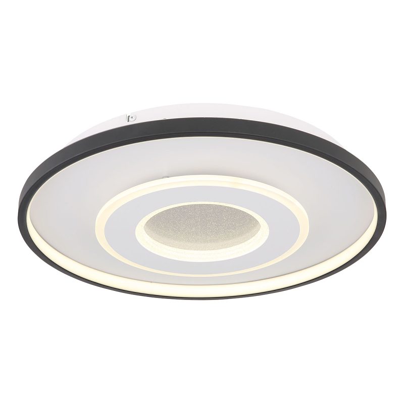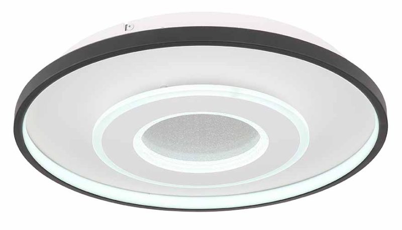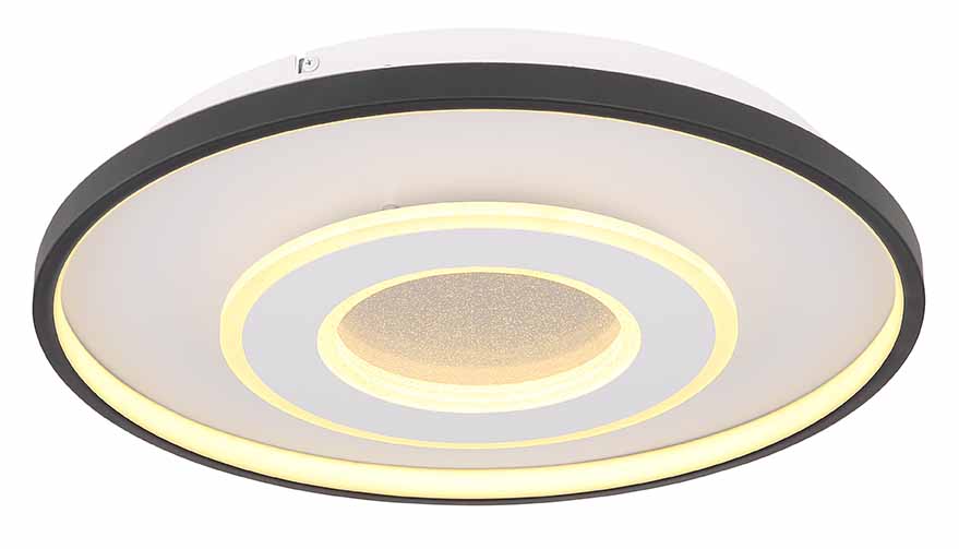 Enchantez votre intérieur avec ce plafonnier exceptionnel, qui combine un fascinant effet de sable cristal et un design rond attrayant (Ø 48 cm). Cette lampe peut être dimmée sans étapes entre une couleur de lumière chaude et agréable (2700 Kelvin) et un blanc froid éclairant (6000 Kelvin) à l’aide de la télécommande fournie. La lampe est également équipée d’une fonction spéciale de veilleuse qui crée une atmosphère douce. De plus, elle dispose d’une fonction mémoire pratique, permettant de conserver votre dernier réglage choisi, même après l’extinction de la lampe.