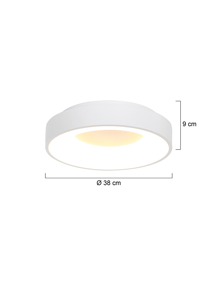Le plafonnier blanc de la série Ringlede a un design moderne et un diamètre généreux de 38 cm. Le module LED intégré de 30 watts offre une puissance lumineuse maximale de 2800 lumens avec une température de couleur chaude de 2700 Kelvin. Grâce à sa compatibilité avec un variateur externe (non fourni), vous pouvez facilement ajuster l’intensité lumineuse. Idéal comme éclairage de base dans divers espaces.