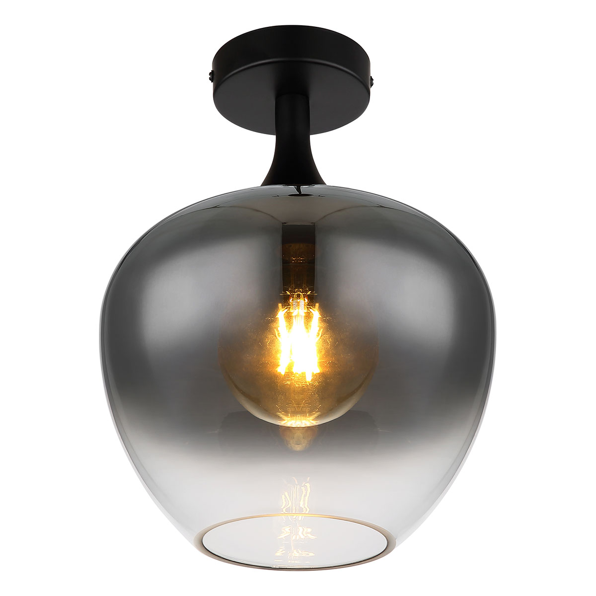 Cette lampe de plafond moderne s’inspire d’un design exceptionnel. Sur un support de plafond rond en noir mat se trouve un culot E27 avec un élégant abat-jour en verre fumé (Ø 24 cm). Avec le culot E27, vous pouvez déterminer vous-même la couleur et la luminosité de la lumière jusqu’à une puissance maximale de 40 watts. En raison de leur longue durée de vie et de leur économie d’énergie, nous recommandons les ampoules LED.