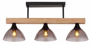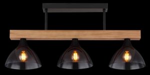 Ce magnifique plafonnier de la série LINDI impressionne par son design élégant. Deux barres métalliques noires mates s’étendent à partir d’une fixation de plafond rectangulaire noire jusqu’à une poutre en bois de 65 cm de long. Celle-ci est équipée de trois douilles E27, chacune avec un abat-jour en verre fumé. Utilisez des lampes de votre choix jusqu’à un maximum de 15 watts. Pour la durabilité et l’économie d’énergie, nous recommandons des lampes LED.