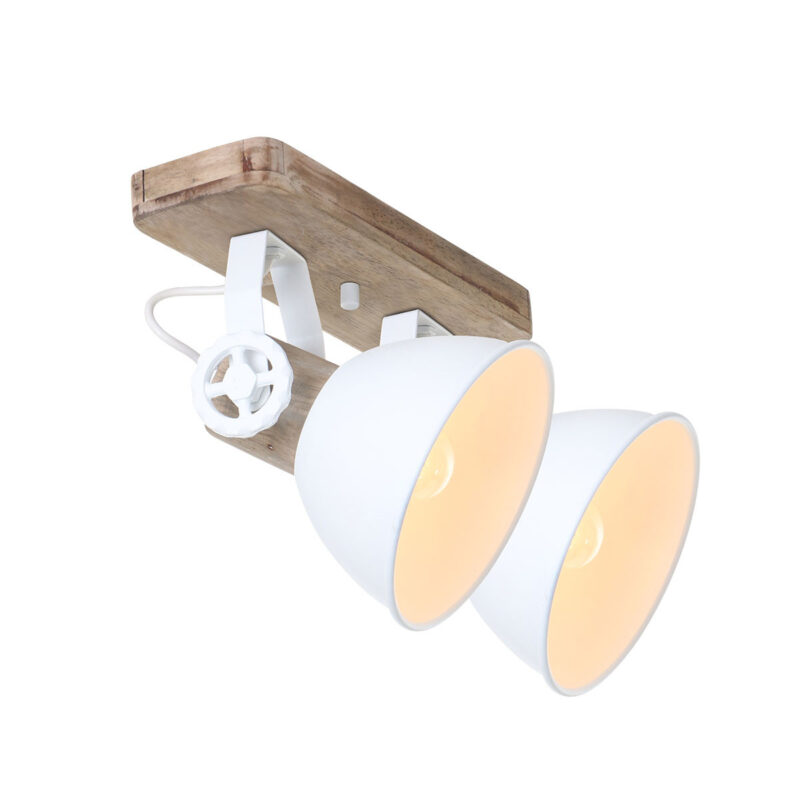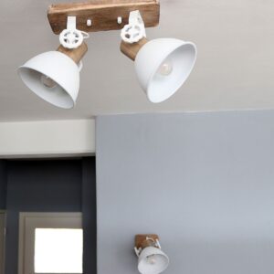Le spot de plafond ou mural scandinave blanc à 2 lumières de la série Gearwood Spot de Mexlite allie un design épuré à des accents en bois chaleureux. Les deux spots rotatifs et inclinables permettent d’ajuster l’entrée de lumière selon vos souhaits. Grâce aux grandes roues de réglage, la direction est facilement ajustable. Équipé d’une douille E27, adapté aux sources de lumière jusqu’à 40 Watts. L’abat-jour a un diamètre de 15 cm et une hauteur totale de 19 cm. Dimmable avec un variateur externe.