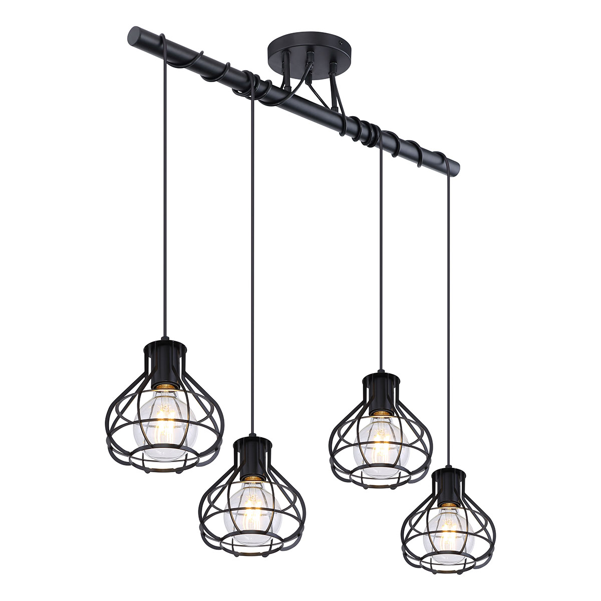 Les styles vintage, rétro et industriel se rencontrent dans ce plafonnier en métal noir mat. Les câbles ajustables apportent une touche personnelle. Simple dans son design, cette lampe suspendue est un élément marquant dans n’importe quelle pièce, que ce soit le salon, la cuisine ou la salle à manger.