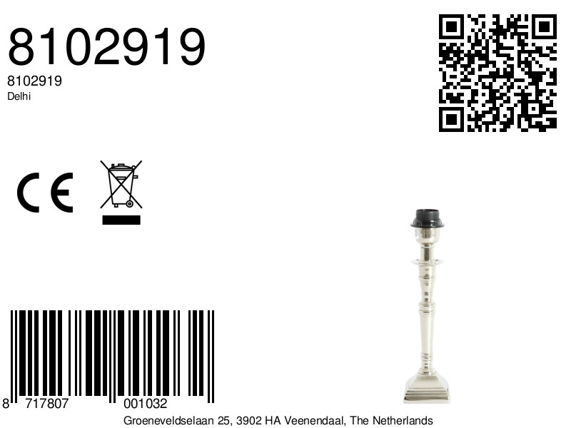 Socle de lampe en argent design classique Light & Living Delhi