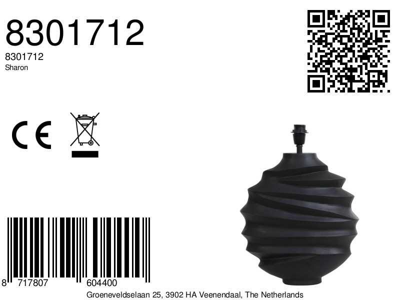 Socle de lampe noir avec motif strié Light & Living Sharon