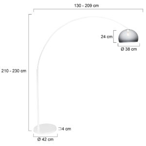 Cette lampe arc contemporaine de la série Sparkled Light ajoute une touche raffinée à tout intérieur moderne. Le cadre en métal blanc offre une base solide et stable, tandis que l’abat-jour en verre fumé d’un diamètre de 38 cm crée une diffusion lumineuse chaleureuse. La douille E27 rend la lampe compatible avec des sources de lumière allant jusqu’à 40 watts.