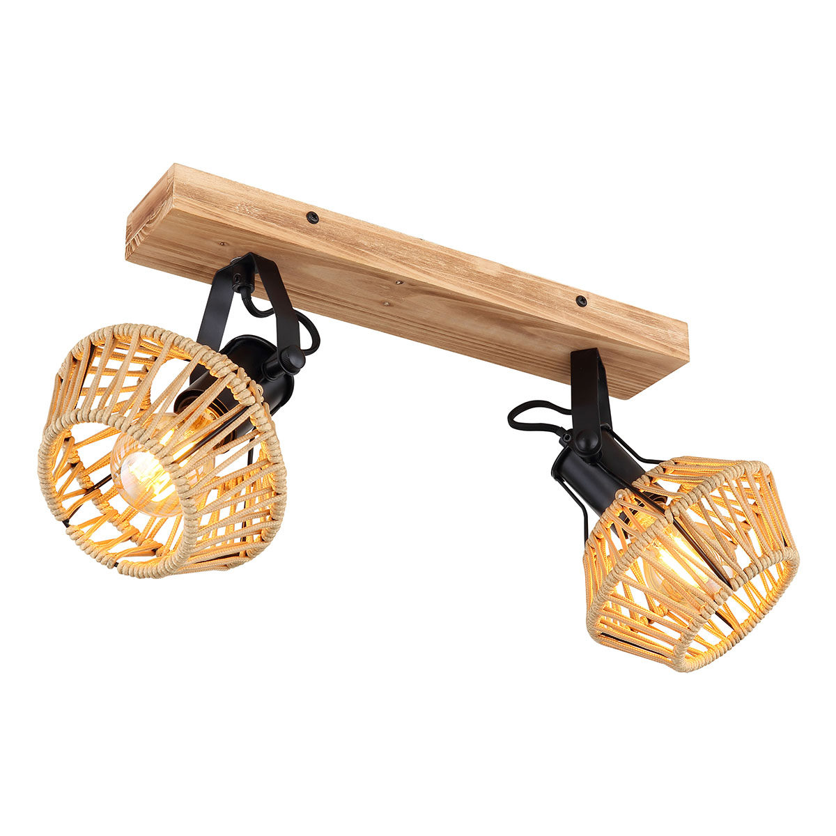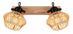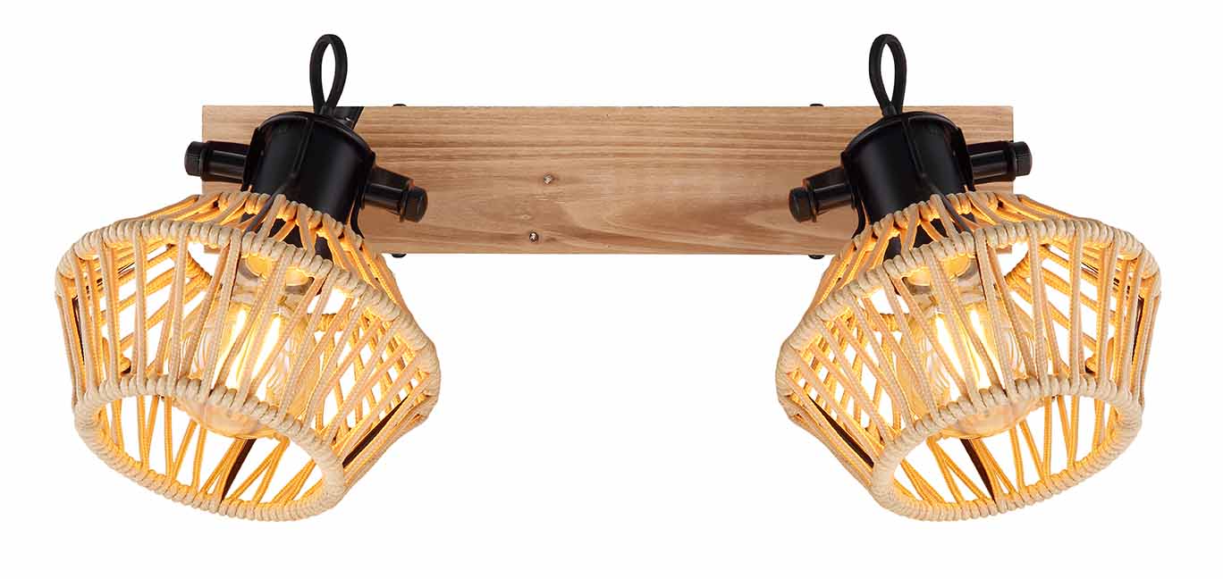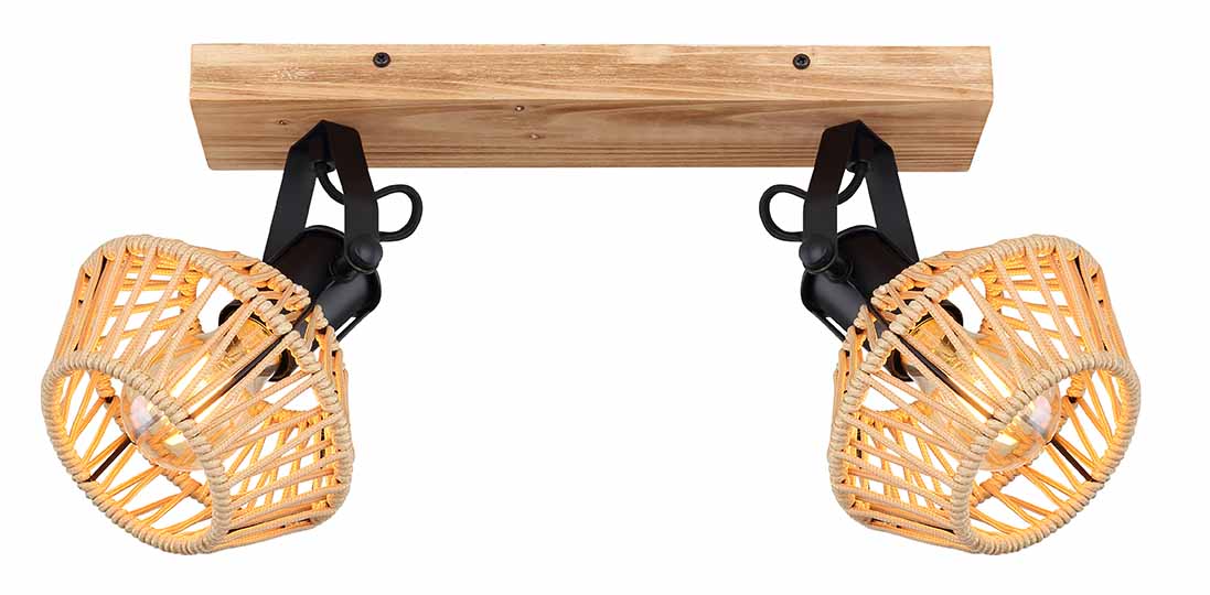 Distinguez votre décor avec ce projecteur au design unique. Suspendu à un élégant support de plafond au look bois (38x16cm), il est doté de deux charnières noires mates, toutes deux équipées d’une douille E27 et d’un abat-jour recouvert de corde (Ø15.5cm). La douille E27 vous permet de choisir la couleur et la luminosité de la lumière, jusqu’à un maximum de 60 watts. Améliorez votre espace de vie de manière harmonieuse en ajoutant d’autres modèles de cette série.