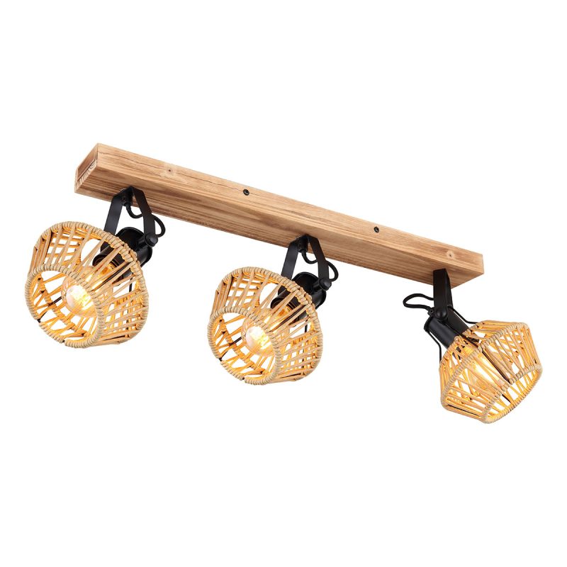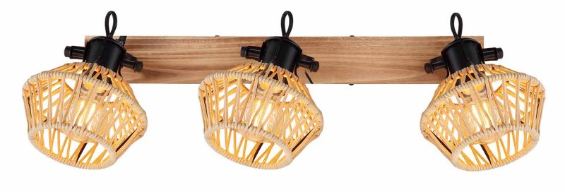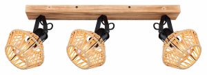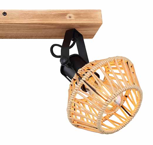 Célébrez votre goût pour un design unique avec cet élégant élément de plafond lumineux. Décorez votre plafond avec un support raffiné décoré dans un look bois (58x16cm) auquel pendent trois charnières noires mates, équipées d’une douille E27 et d’un abat-jour en corde attrayant (Ø15.5cm). Profitez de la douille E27 qui vous permet de régler la couleur et l’intensité de la lumière selon vos envies, jusqu’à un maximum de 60 watts. Pour créer un intérieur harmonieux, vous pouvez associer ce modèle à d’autres éléments de la même ligne.